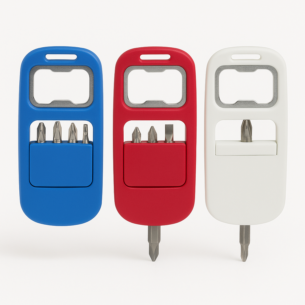 Incluye destapador y 4 puntas de desarmador diferentes e intercambiables