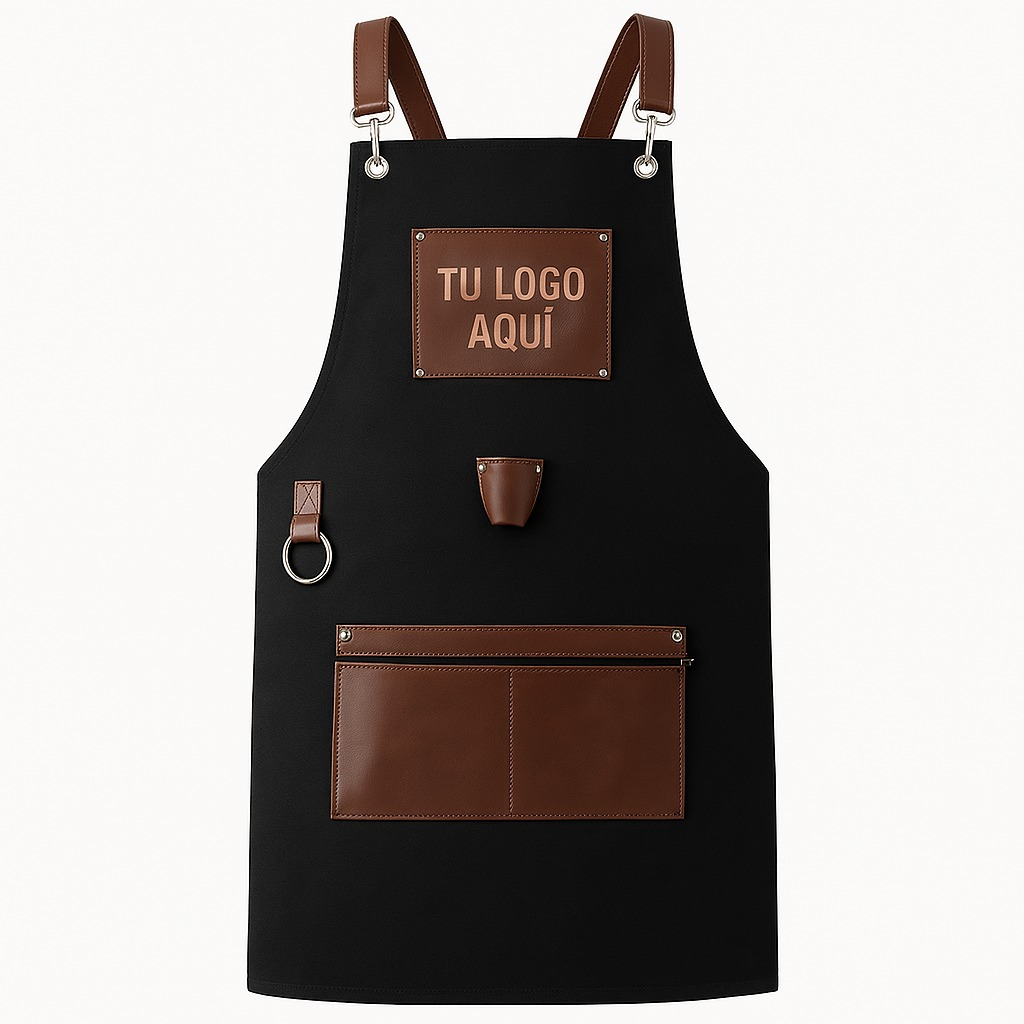 Mandil Parrillero Profesional Descripción: Delantal estilo parrillero ideal para cocina, asados o actividades de taller. Su diseño combina elegancia y funcionalidad, gracias a la mezcla de textil resistente y aplicaciones en piel sintética. Dimensiones: Talla única ajustable (Las dimensiones pueden adaptarse según necesidad estándar de 65 x 85 cm aprox.) Material: Cuerpo principal: Tela gruesa de algodón o poliéster de alta resistencia Detalles: Piel sintética (bolsillos, porta utensilios, tirantes y portaplaca para logo) Técnica de impresión: Termograbado sobre piel sintética (ideal para logos, nombres o marcas) (10cm) Características: Bolsillo doble frontal amplio para herramientas, utensilios o accesorios Placa superior con espacio para logo personalizado Porta utensilio central con broche Anillo lateral metálico para colgar toalla o pinzas Tirantes ajustables con herrajes metálicos resistentes Ideal como regalo promocional o kit premium para eventos de cocina o marca gourmet
