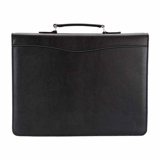 Carpeta portafolio con block de raya tamaño A4 con 20 hojas. Incluye compartimento para bolígrafo, tarjetas y pasaporte. Arillo de 1.25 pulgadas. No incluye bolígrafo.